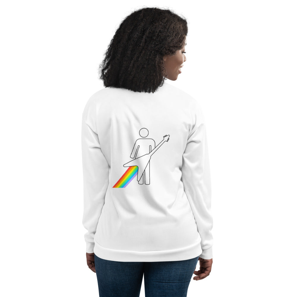 Bring some pop to your outfit with this lively All-Over Print Bomber Jacket. Perfect over a simple tee or layered atop a cozy hoodie, it’s a stylish win either way. Featuring a soft brushed fleece lining and a comfy unisex cut, this jacket is a dream come true. Don’t wait—snag yours before it’s gone! • 100% polyester • Fabric weight: 6.49 oz/yd² (220 g/m²), slight variation possible • Brushed fleece interior • Unisex fit • Overlock seams • Durable neck tape • Silver YKK zipper • 2 matching fabric pockets • Components sourced from the US and China